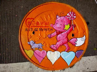 经过阿特斯墙绘艺术家团队为期1个多月从设计,施工绘制,调整到作品成品的努力,中山路会说话的井盖开始萌动起来了。