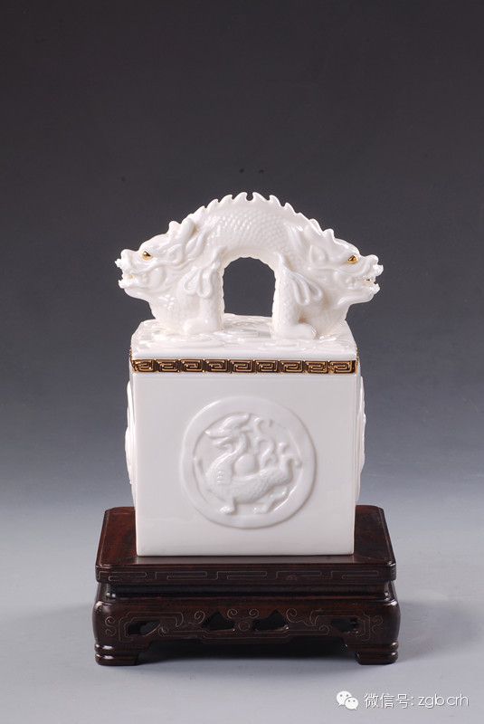 《年年好运》取古代皇帝玉玺的形和意,中国传统的双龙为印钮,用“中国白瓷雕”的文化和厚重,四方浮雕“青龙、白虎、朱雀、玄武”镇守四方之神灵图案来佑护主人吉祥安康。